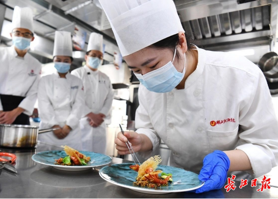 “目前,在校烹饪专业学生有500多人。”高技能人才培养是楚菜研究院的重点工作。湖北经济学院教授、楚菜研究院院长邹志平告诉记者,弘扬楚菜文化,叫响楚菜品牌,发展楚菜产业,都离不开优秀的楚菜人才。每年都有一些表现突出的楚菜后备人才还没走出校门,就被某些楚菜名店名企“盯上”了。张子豪目前还是楚菜研究院的一名大三学生,2021年,他作为湖北代表团参赛选手在全国乡村振兴职业技能大赛上获第二名(银牌),取得湖北省代表团参赛的最好成绩。还没毕业的他,已与襄阳的一家知名酒楼达成工作意向。
